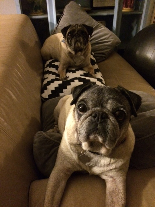 Our two miniature schnauzers relaxing on Grandma’s couch in Northern Wisconsin