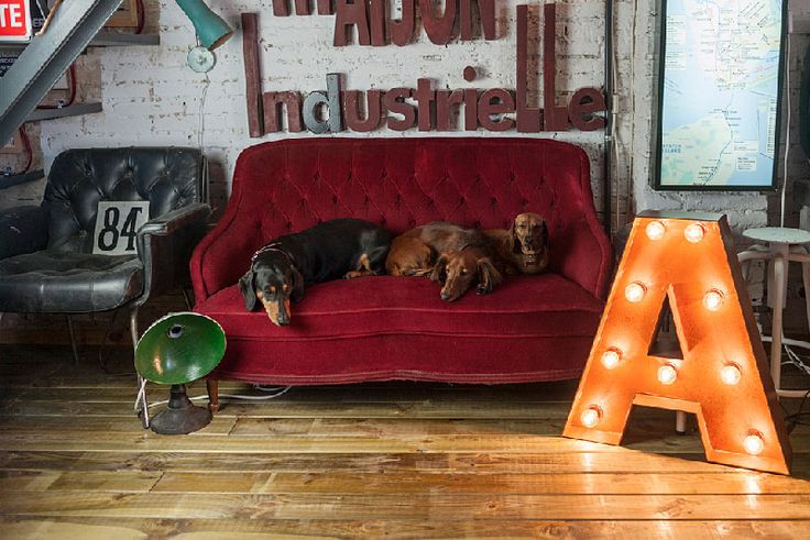 My pup (Professor Cumulus – Informally Known As Abbie) is passed out on a Mitchell Gold sofa at the interior design firm where I work. She comes to the office with me every day and this was a long one. More information about the artwork above her is here.