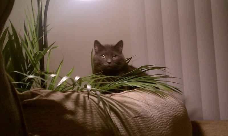 My cat, Marcus, liked to chew on my plants. The only way he could reach this one was to get on the back of the chair.