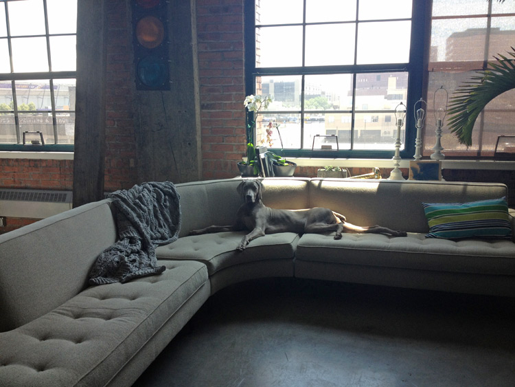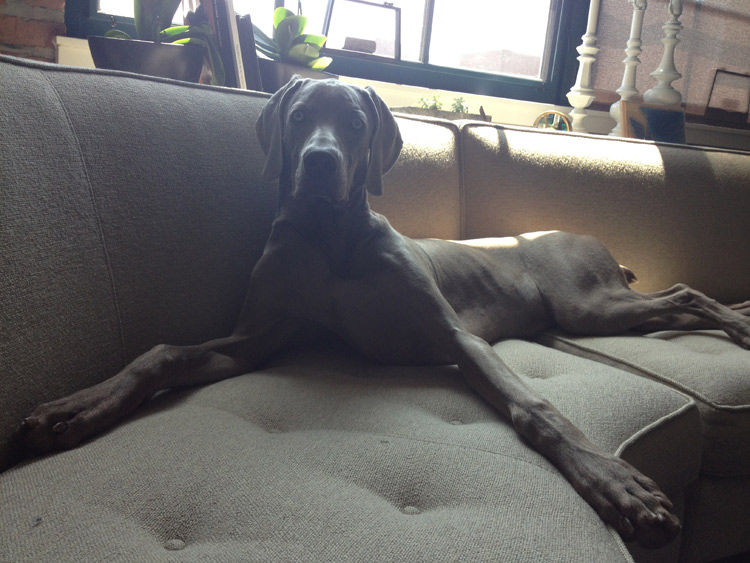 Featuring Puck (Weimaraner) and Room and Board Reese Sofa! We hadn’t planned on letting him on the sofa… but he was so darn cute and cuddly we couldn’t bare thought of denying him the pleasure! 🙂