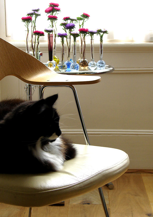This is our rescue cat Elvis in his favourite afternoon nap spot, on my Robin Day dining chair, enjoying the last of the late afternoon sun! He immediately claimed the chair when we brought it home, so he is obviously a discerning cat when it comes to design classics!