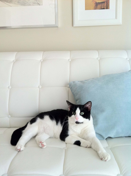 Here is a picture of my cat sophie on my sofa. I think she was Audrey Hepburn in a former life.