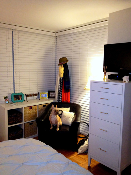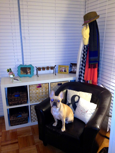 My husband and I just re organized our bedroom to have a little “nook”. I tried to take a picture to send to my mom to show her, but Lily, our french bulldog, wanted to be in the picture too.