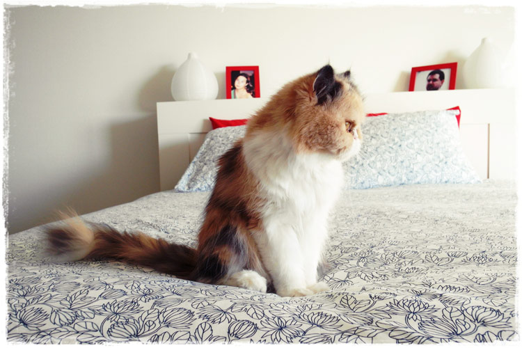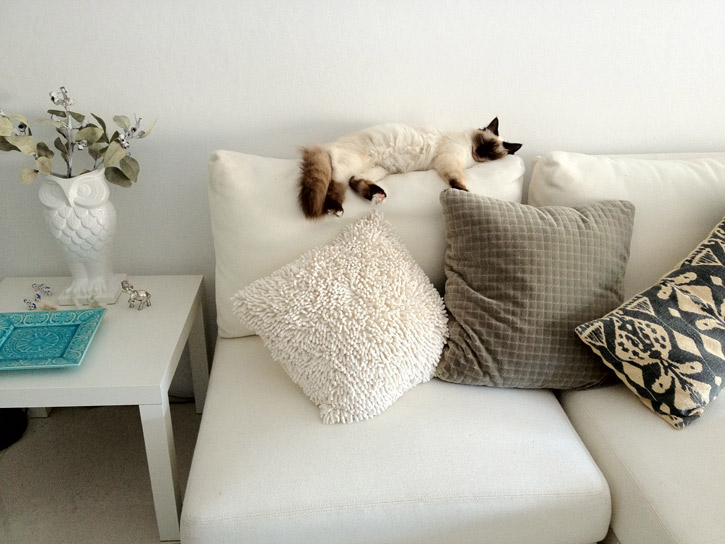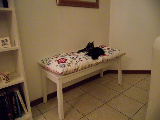 Here is Virgola testing out our brand new Ikea bench and cushions. We hadn’t even tightened the last screw that she had already leaped onto it. She surely seems to appreciate it.