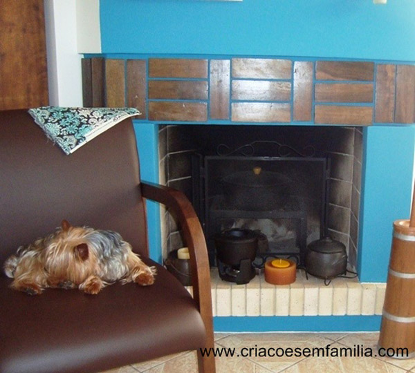 I was shooting the new design I did in our fireplace (reuse of parquet flooring) to display on my blog and Kimy, our Yorkshire, was sitting on the couch!