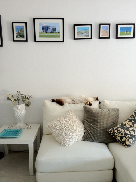 I send you two pictures of my cat Azul in the living room of my apartment.