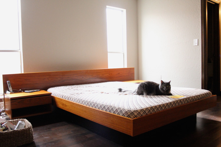 I was so excited to receive our first “real” bed this week from West Elm. Bye-bye steel frame, hello soft plush tuffted headboard and comfy colorful bedding. Our sweet puppy Cammie, a pit bull/boxer rescue, agreed, immediately showing her approval!