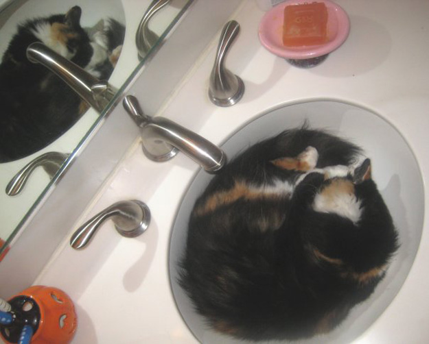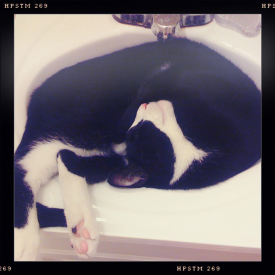 I have attached a few pictures….The first one is of Hank, our dog, laying on the couch. Our cat Leroy is behind him. Hank is ten and has 3 legs. He’s the sweetest dog on the planet. The second one is Annabel. She is a dog that comes over for some dogsitting. She likes this chair cause it’s right next to the bed. The last one is of Leroy in the bathroom sink. I know it’s a close up, but our bathroom is teeny! He likes to sleep in the sink on occasion.