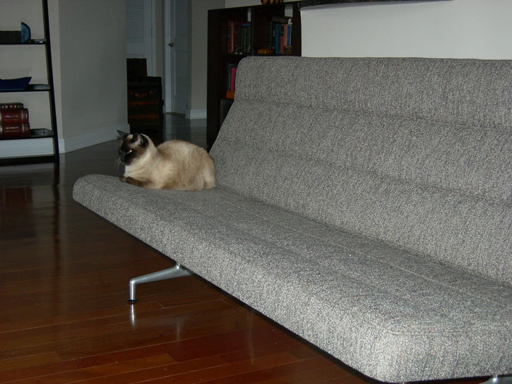 If you’d like to send us photos to include in next week’s “pets on furniture” post, please ensure your photos follow our basic rules: First, the pet must be on a piece of furniture. And said piece of furniture must be clearly visible in the photo, so it takes center stage rather than your pet. Think of it more of a photo of a great piece of furniture that you want to show off…and your pet happens to be sitting on it. And second, the photo must be of decent quality. If it’s dark or fuzzy (from a camera phone) then it may not make the cut. Thanks! (Photos, your name, location and a brief description can be sent to desiretoinspirekim[@]hotmail[.]com and PLEASE don’t send closeups of your pet!)