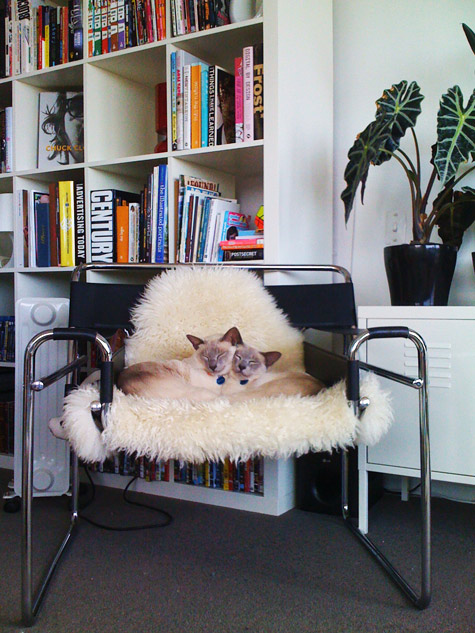 Hi there, here’s a photo of our Tonkinese cats asleep together on their favourite chair.