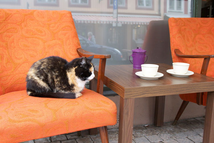Since I have no animals of my own (currently living a gypsy-student-life), I thought I’d submit a photo of this wonderfully colorful cat I found outside a shop in Lillehammer, Norway.