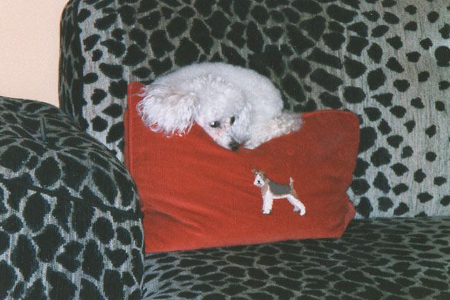 “These are my friend Joanne’s bichons on the sofa in the family room.”