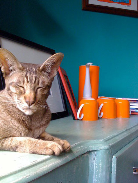 “Ashes has the priviledge to sleep wherever she wants and she really likes this cabinet my grandfather built for me. Judging by the look in her eyes, she didn’t really like the photo session.”