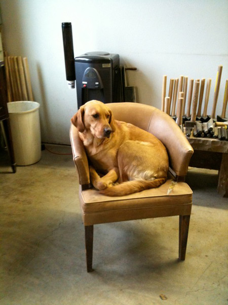 “I saw this sweet pooch one day while I was at our local rock quarry getting some nice stones for our aquarium. This is the waiting room. I don’t remember his name but the owners assured me that no one else was allowed in the chair!”