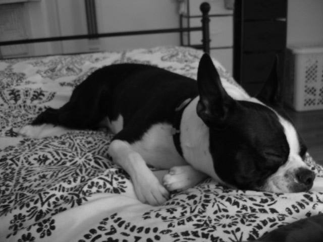“Miss Bee finally fell asleep after renovating a few items in our house. It is all new to her and she thought the forbidden couch was her style.