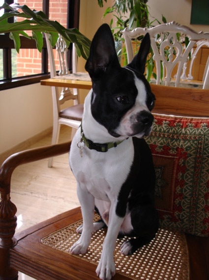 “Here is our dog Oscar on our favorite vintage chair, he loves to pose for the camera, and yes that is him in the picture up on the wall.”