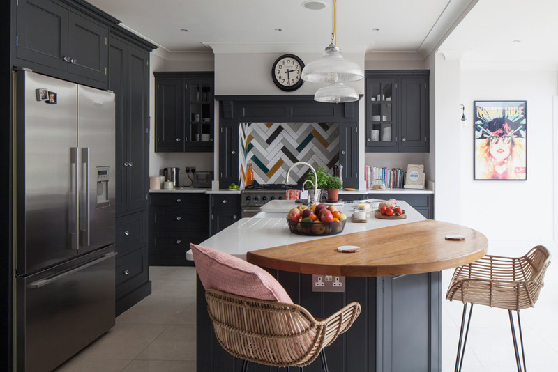 I am crushing hard on this home designed by London-based Tiffany Duggan of Studio Duggan. It is a eye-catching blend of dark colours, pattern, some pink which always wins me over, and graphic patterned tile. Yes, yes, yes and YES!