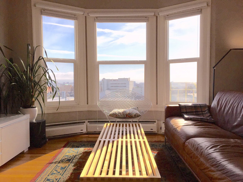 When I moved to San Francisco, I was more interested in modern homes versus older homes that would potentially need updating, as my work in video games was keeping me really busy. What really drew me to this place – despite the fact that the kitchen and bath could use a modern update – were the lovely views of San Francisco (I can see the Mission, SOMA, and the downtown skyline) and windows in every room (including the closet). The price difference between this and another modern option that I liked would give me enough budget to remodel it, and the modern place didn’t have a view… That was enough to help me make my decision, and how I ended up here.