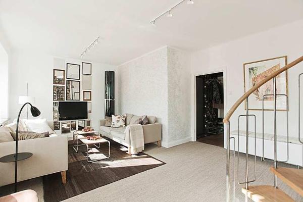 What is it about Swedish homes and Swedish real estate websites? Look at this fabulous 2 level apartment. White, just enough old with new, obviously a great location, a balcony for more than just a couple of chairs… think party for all your friends, a brick wall to die for, cool spiral staircase (perhaps a liability with all those balcony parties) and lots of light shining in. Check out the wall of mirrors surrounding the flatscreen. Clever idea. I have a new real estate website to stalk, Eklund. Link for this apartment here. Prices will make your hair curl but it’s good to dream.