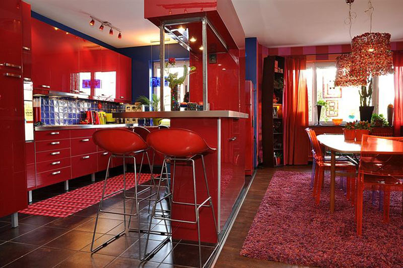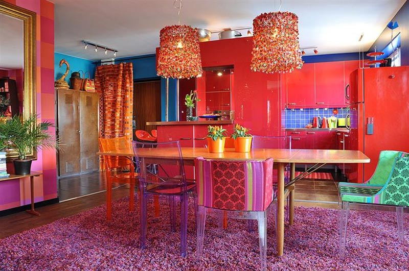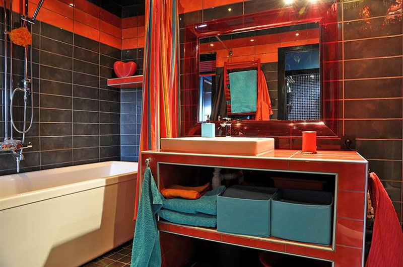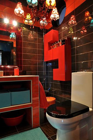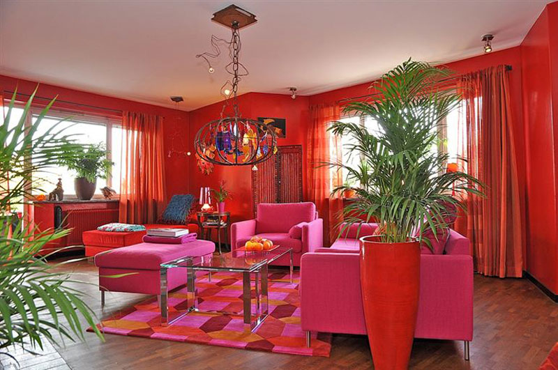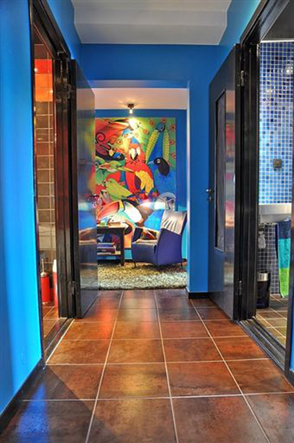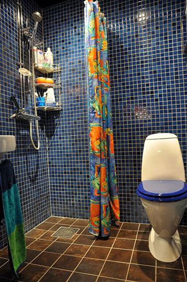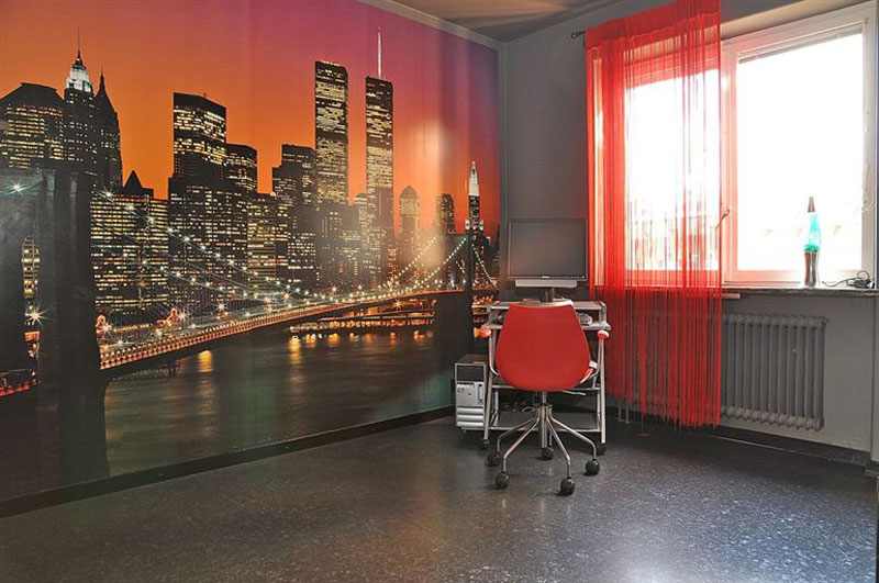 A big thanks to Åsa for sending us the link to this INSANE flat for sale in Helsingborg, southern Sweden. This is so atypical of what Swedes do to their homes. We all know they LOVE white…and there is not one spec of white in this apartment (with the exception of the tub and toilet). It must take special people to come up with this, and be able to live here day after day. I sure as hell could not. I would lose my freaking mind. It’s just so bizarre. Good luck selling this place!