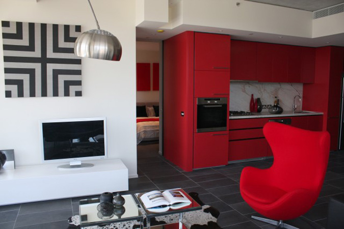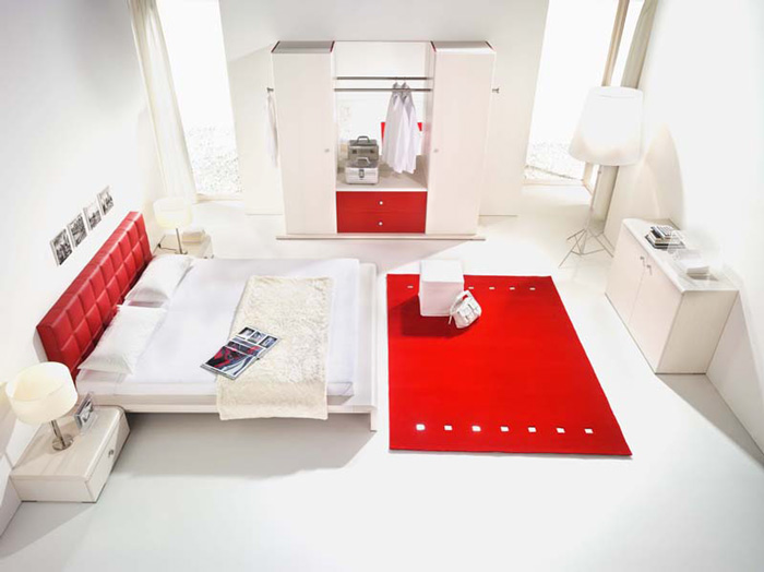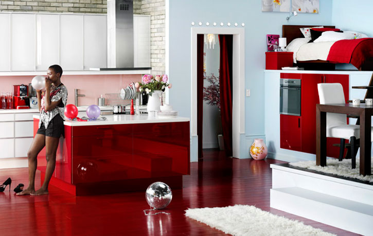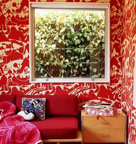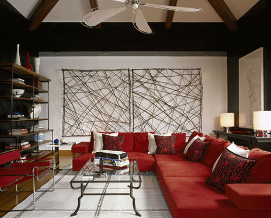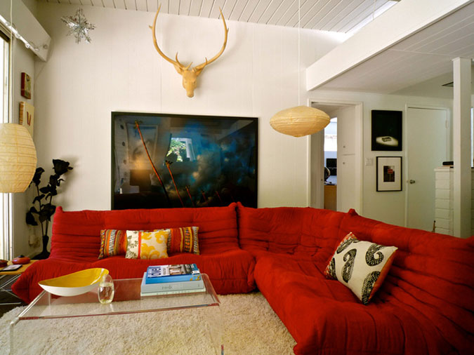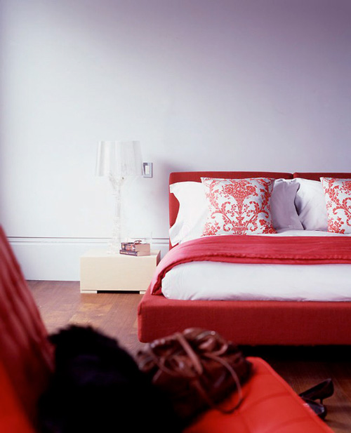 Happy Canada Day to all of our Canadian readers out there. I hope you enjoy the day off and partake in some typical patriotic nonsense like an overload of beer consumption, food and fireworks – all at someone’s cottage on a lake. The weather is supposed to be GORG here in Ottawa which will be perfect for the aforementioned activites – and coincidentally Wills and Kate’s visit. 🙂 In the spirit of Canada Day, I thought I’d feature some spaces decked out in red and white (like I did this day back in ’09)- and while red is probably my least favourite colour, it is a quick and easy way to inject some drama and energy into your decor.