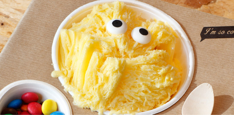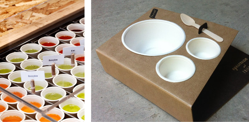 I scream. You scream. We all scream for ….eyescream? A self service shop in Barcelona selling little monster bowls of Taiwanese shaved ice cream. From product design to branding, graphics and packaging all the way to interior design Estudio m Barcelona has taken what is normally an amorphous mass of sweet goop and introduced a fun taste and visual feast to the passing customers. How cool (pun intended) are those ice cream monsters with their sugar eyes?