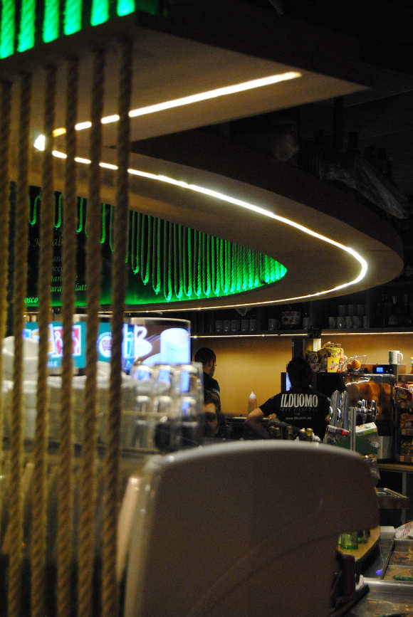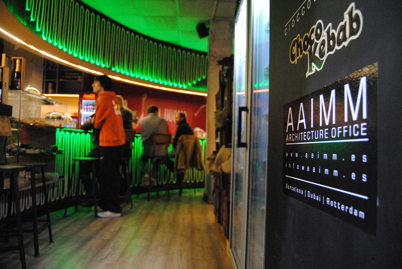 The renovation of a coffee bar in Lleida, Catalonia explores texture and light. Rope and slates made from fruit boxes from the local area provide visual interest while light and more importantly shadow draws patrons to cozy corners. The atmosphere is warm and rustic like the local country shop it is , avoiding the high tech and harsh while referencing the agricultural buildings of the area. The space is simple and real, the buzz is not only from coffee but from patrons at ease. Design is by Barcelona based AAIMM.