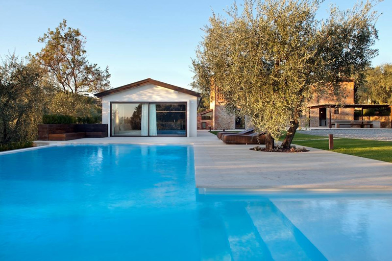 Taking an old structure and, restoring the beautiful original details while giving it an eccentric modern vibe in the decor is something I gravitate towards and I am doing with my own home. Rome based interior designer Ilaria Miani takes this to another level with her spaces. Miani’s passion for restoring abandoned farmhouses, palaces and villages is inspired first and foremost by the building itself. A bit of colored plaster still holding onto a crumbling wall; a stone niche carved by ancient hands; or the sagging massive wooden beams that once supported an existence that has long since faded are her starting points. Tiles are handcrafted of clay and baked in nearby kilns; tables and beds are forged with the same hammers that have been used for generations; and chairs carved by carpenters using ancient tools. The landscape too, informs and inspires. Whether it is the rolling hills of Tuscany, the gentle waters of a Venetian canal or the cobbled streets of Rome, Miani’s treatments speak the same language, evoking and reinterpreting a timeless language. While Miani’s creations are rooted in the past, they are very much a thing of the present. Her own designs – modern, sleek and colorful – encompass every detail of her projects. From the chairs and the lamps to the forks and the linens, the effortless casual sophistication that has become her trademark, creates a uniquely cohesive whole.