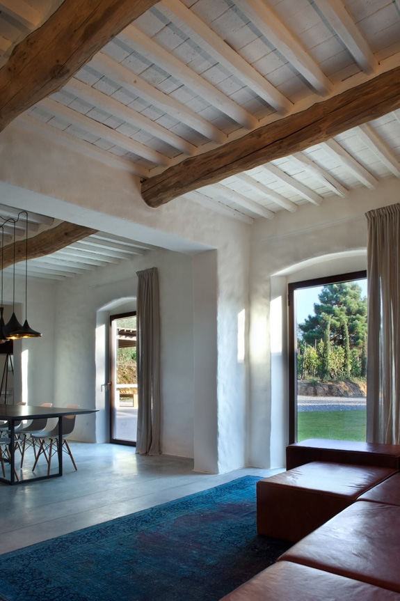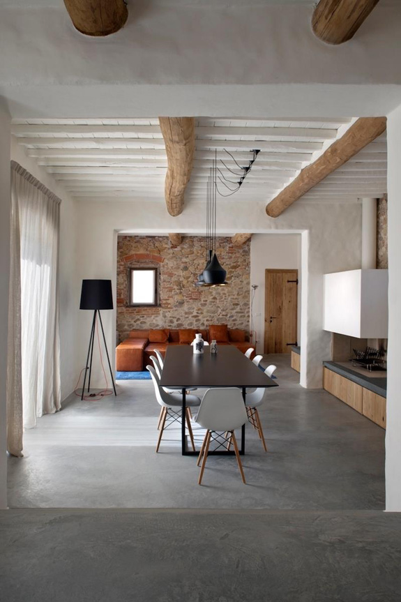 Pair an 1887 farmhouse in the Italian countryside with architecture firm MIDE and you get an incredible mix of modern and rustic. Maintaining the original stone, brick and chestnut wood exterior, inside natural lime plaster was applied on the walls to highlight irregularities, original beams were exposed and ceilings bleached. The result is a dreamy blend of old and new.