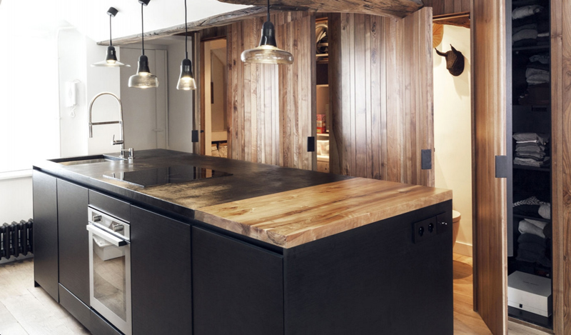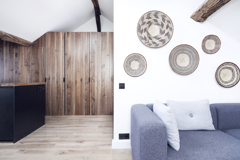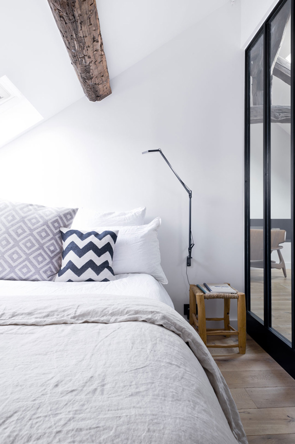 I have fallen in love with this 18th century apartment in the heart of Le Marais, Paris. Designed by interior architect Margaux Beja, it is a stunning blend of old-world and modern. With a Scandinavian feel, this space is cozy and bright. A beautiful walnut wall hides spaces like the laundry and bathroom, and a glass wall separates the bedroom from main living space allowing light to flow through. It is pretty much perfection.