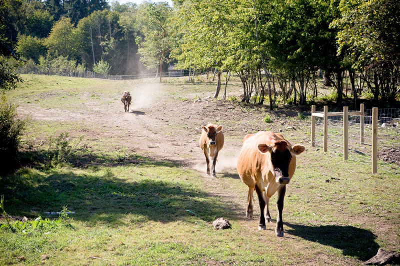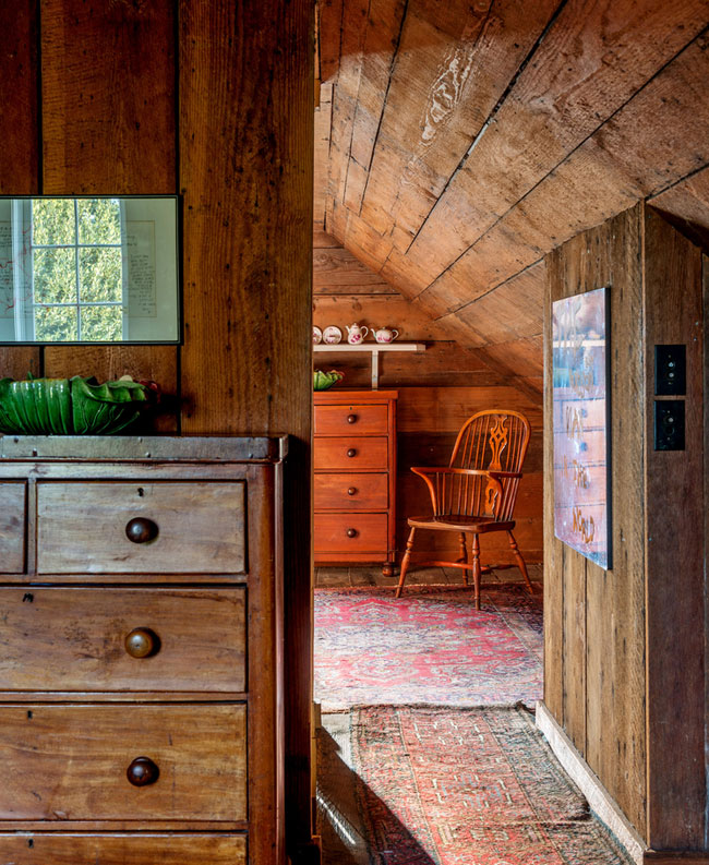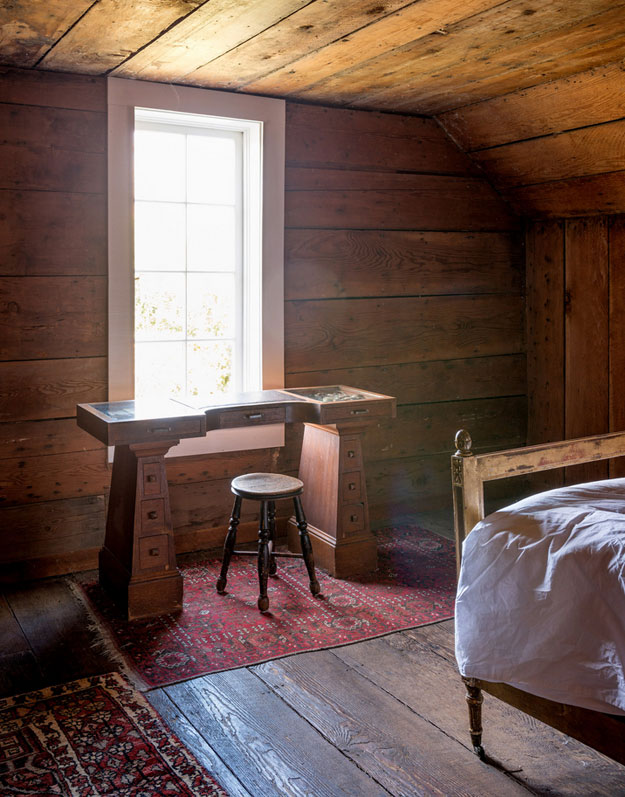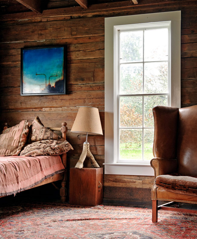I came across the website of Kurtwood Farms the other day while doing some random googling and my heart just about burst. I love city life, but to have all of this space, to have as many animals as I wanted (and not break any laws like I am now) and to have an honest-to-gawd cabin to decorate would be a dream come true. Kurtwood Farms is located on Vashon Island near Seattle and has everything, a creamery, pond, bullpen, cheese cave, wood fired oven, milking parlor, cookhouse…and this log house. It is breathtaking in all its original and rustic glory.