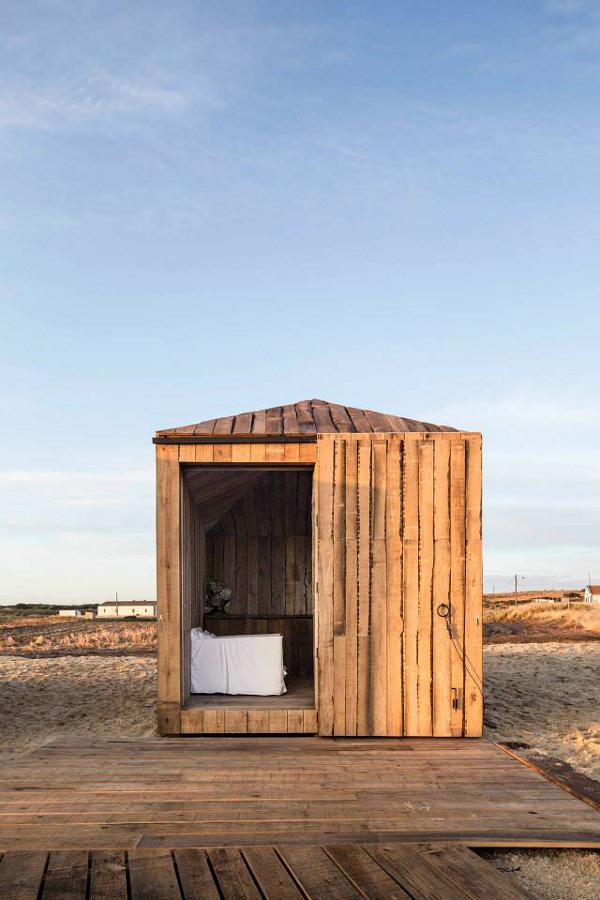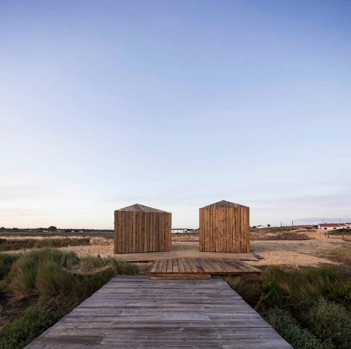 Perched on the tidal waters of Comporta south of Lisbon, Portugal are two small cabins. Crafted from recycled timber they reference the local fishermen’s huts. The first cabin contains a bedroom and bathroom. The second a living space with basic kitchen. Simple and beautiful, romantic and at one with the wetlands. Cabanas no Rio by architect Manuel Aires Mateus. In my dreams I am there already.