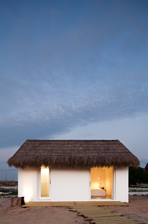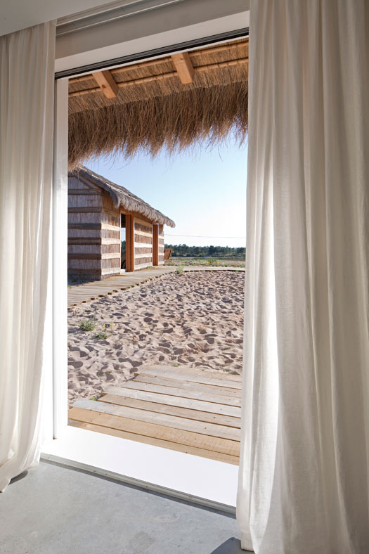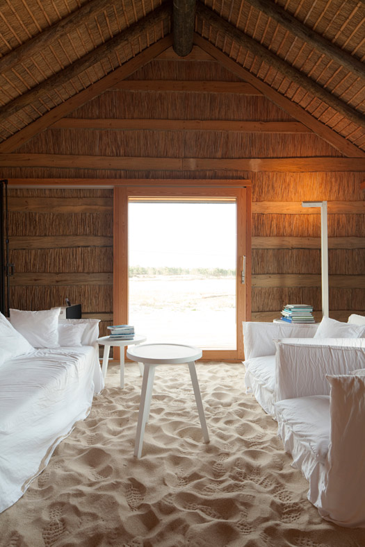 I was fortunate to be able to escape the dreary winter weather for a bit, but for those who aren’t so fortunate, I’ve got a virtual vacation for you. This is CasasNaAreia, a magical holiday rental located in Alentejo, Portugal via Welcome Beyond. CasasNaAreia is a gorgeous retreat taking old masonry buildings and turning them into new, contemporary structures. The property with 4 double bedrooms is about the experience of living almost in an extension of the natural environment, especially when in the kitchen/dining area – which is laid out with a carpet of fine sand. Surrounded by rice paddies and umbrella pine forest, CasasNaAreia looks out onto the Sado estuary famous for its stunning sunsets, salt pans, flamingos and flocks of dolphins.
