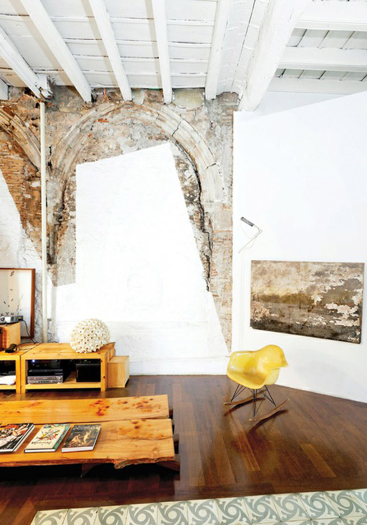 Any regular readers of our blog know that I love rustic decor as I wax lyrical about it fairly often. I essentially live in jeans, and even in my decor I much prefer a more casual, non-stuffy environment. That is why I love a rustic space. It’s modest, comfortable, and combines gorgeous textures – and you get the added bonus of a bit of history (typically). Now mix in some modern elements and funky vintage pieces and this juxtaposition is what I consider perfection. I do however think a space can be too rustic and cold – if it’s just a bunch of wood and concrete and stone, it’s too much. Some good lighting, natural textured fabrics and some faux sheepskins can do wonders to warm up a rustic room. I’m curious to know what you all think – does a rustic space turn your crank?