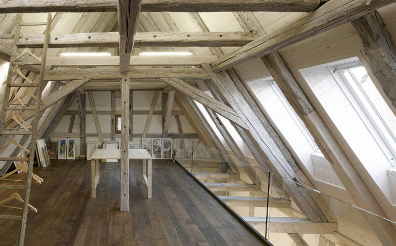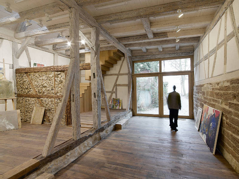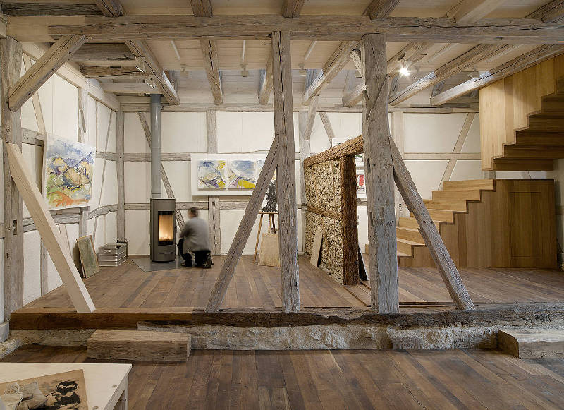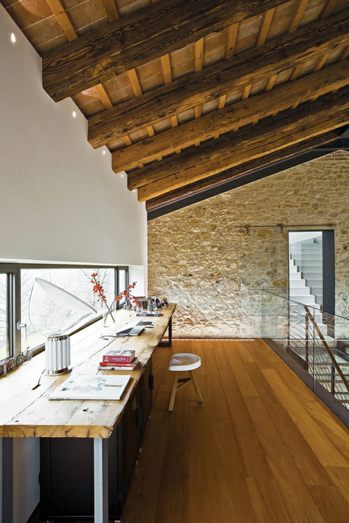 A 17th century barn conversation in Waiblingen, Germany, Atelier S is a studio and exhibition space. Rustic elements were retained and restored (the building was in danger of immenent collapse) while a modern staircase sculpture leads to the second floor. By Stuttgart based COASToffice… bringing together the past and the present, rustic and sleek.