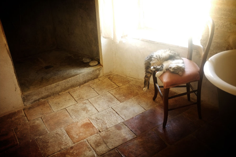 You may remember Fabien from this post of his home back in ’09. He emailed us recently, hoping we could help his friends out. You see, Olivier & Caroline are selling their absolutely gorgeous, renovated home in St Maurice de Cazevieille, Provence in the South of France. What a dream! It took them 8 months to execute this green renovation, using original materials such as lime and sand, wood and stone and combining them with very modern appliances to update this very rustic home. This couple are now looking to sell as they have discovered another project. So if any of our readers are on the hunt for the home of their dreams in the South of France, look no further! More details here. (P.S. I’m obsessed with the cat photo – go figure).