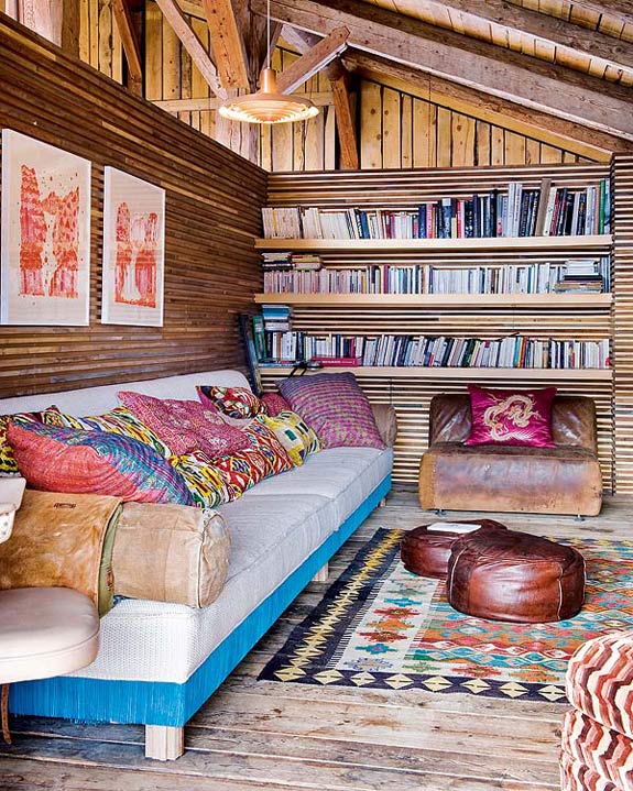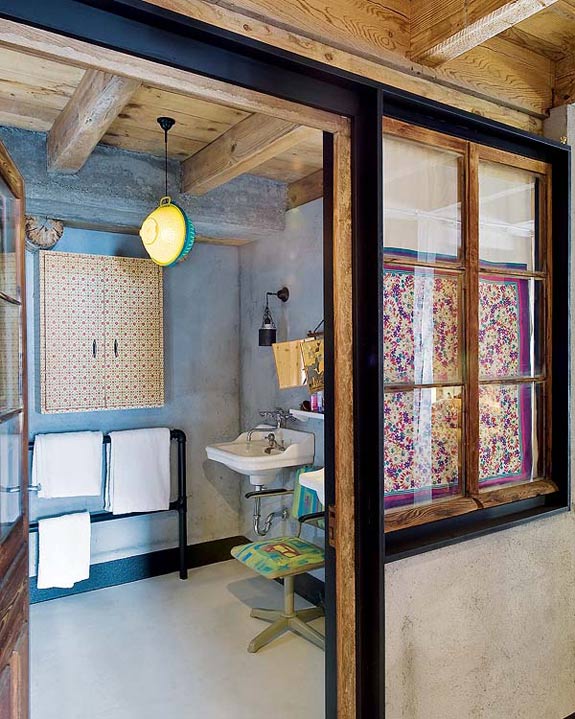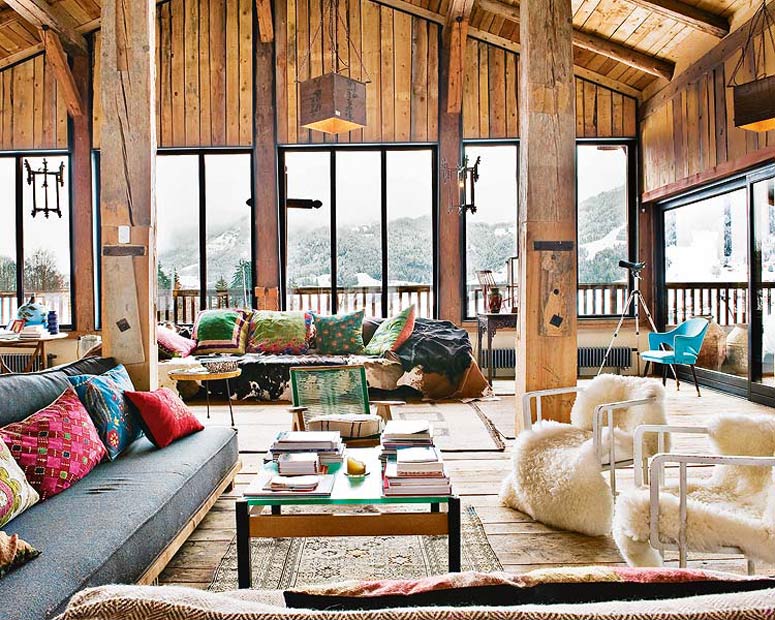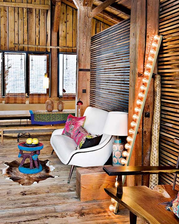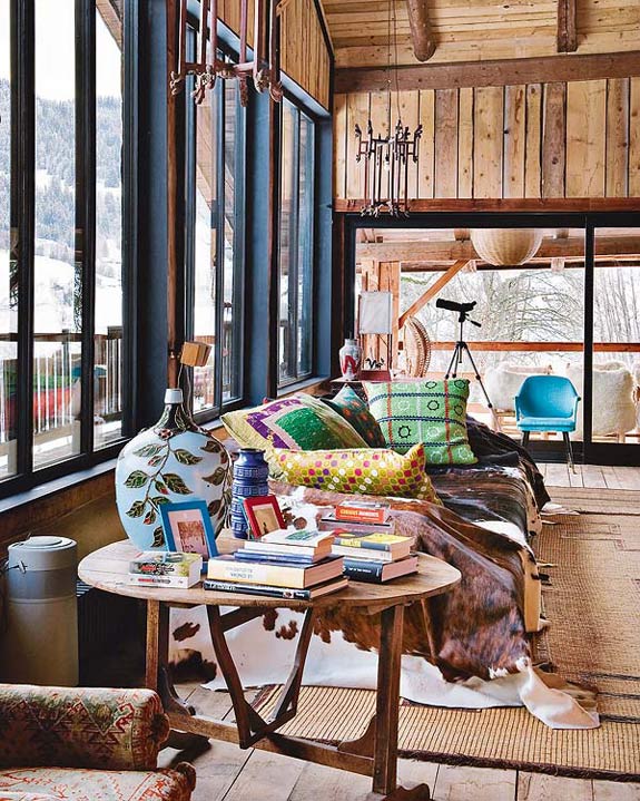 While I’m on a role with rustic interiors, how about another one? This completely renovated cabin is located in the town of Megéve in the French Alps. It was a 2 year project to renovate the 1870 structure, and was decorated by Belgian decorator Lionel Jadot. It’s filled with an unexpected mix of vintage finds and elements from trips to Africa, Asia and Europe. The decor is a fantastic surprise, but I’m a little taken aback by the Bisazza tiles on the kitchen island. Those don’t make sense to me for this home – they’re too elegant. Everything else = LOVE!!! (Via Nuevo Estilo)