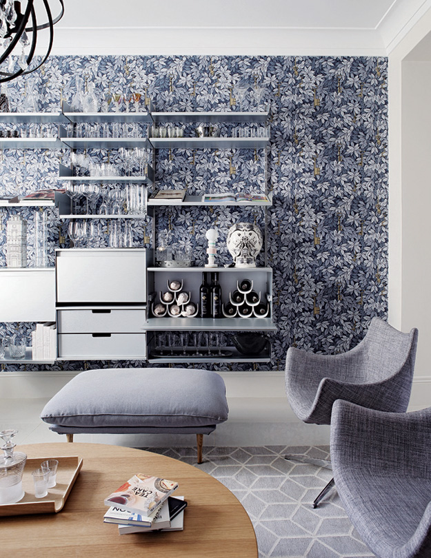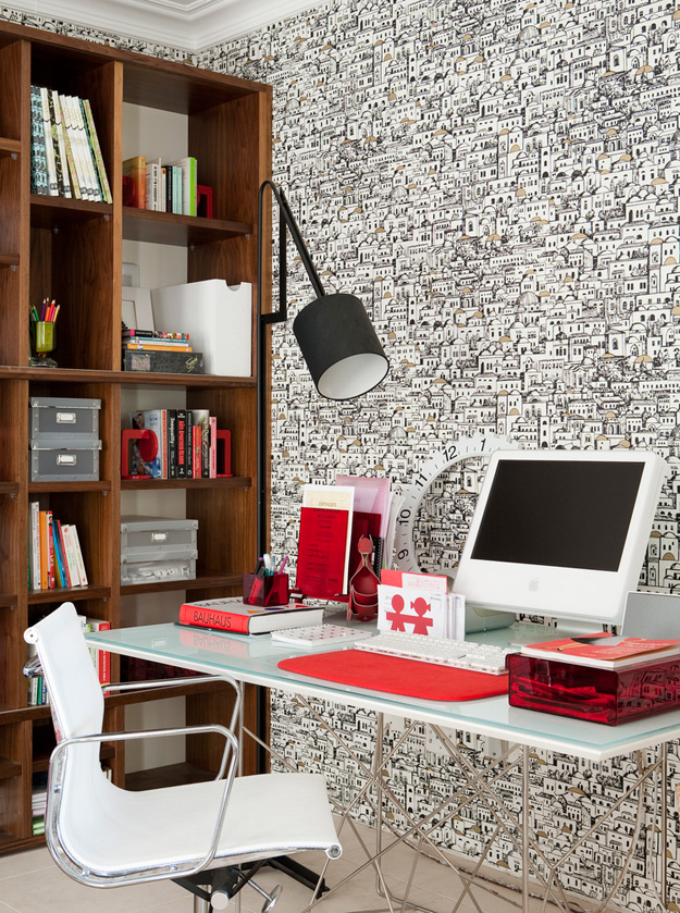 I’ve seen Boho Scandi and Boho Shabby Chic. I’ve even seen Boho Gothic and a touch of Boho stirred through Hollywood Regency but it’s rare to see Boho Modern. Glass and chrome, sleek kitchen, wishbone chairs and modern art married with a riotous Roche Bobois Mah Jong sofa, oriental wallpaper and lacquer cabinets. A modern loft style apartment with a strong personality. And then there are the views. A Private Residence in Covent Garden, London by Caroline Cobbold Design.
