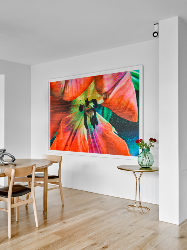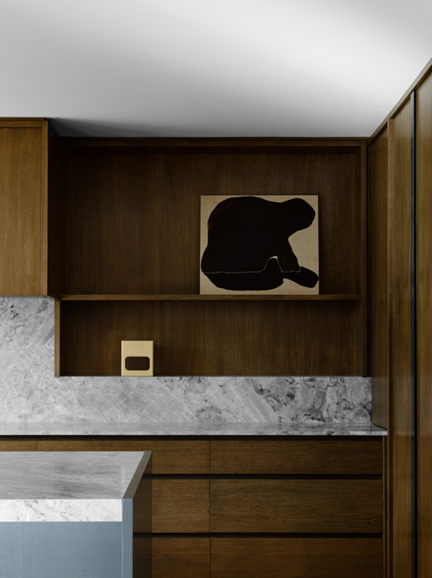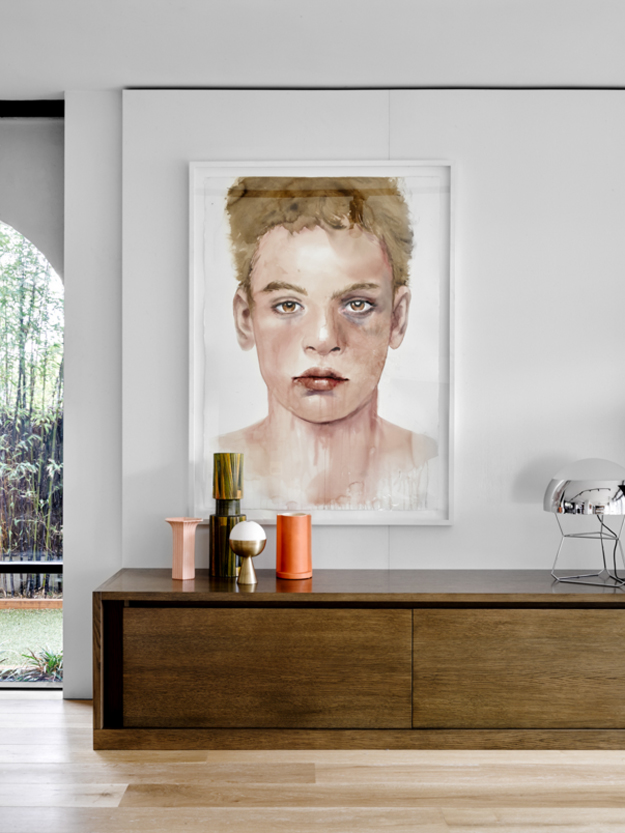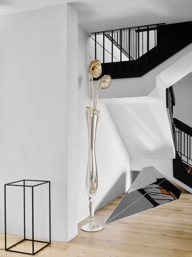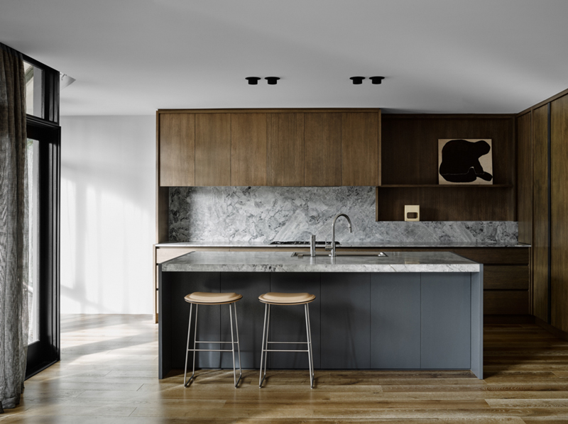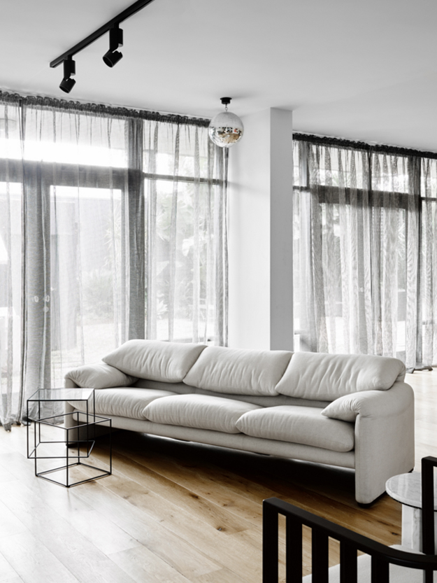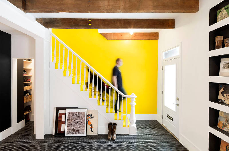 In this home renovation by Australian architecture firm Flack Studio, some original history is maintained while updating with some modern touches. And I love it. And the crazy stair carpet is explained: The charm of this house lies in its exceptionally cool architectural heritage. As a late 1960s build by Holgar + Holgar, nothing short of a contemporary redux of 1970s interior style would do it justice. Boldly black angular lines in the staircase and window frames juxtapose brilliantly against the original luxuriant curves of the building. Ultra slick, tightly grid-patterned bathroom tiling is a confident nod to the modernists’ geometric interests, while the original tiger print wool carpeting remains an incredible focal point of a modern family home that celebrates its pimping pad origins. (Photography: Brooke Holm, Art Direction: Marsha Golemac)