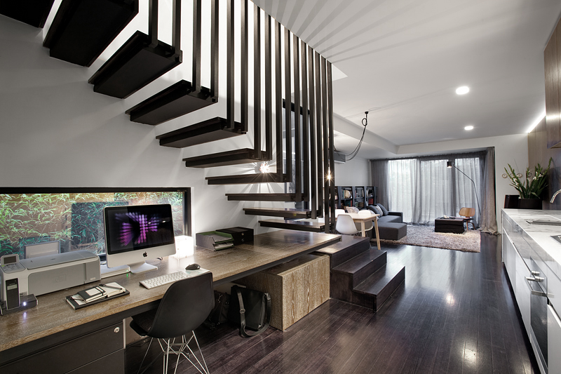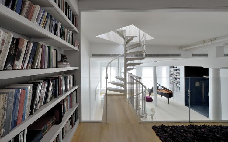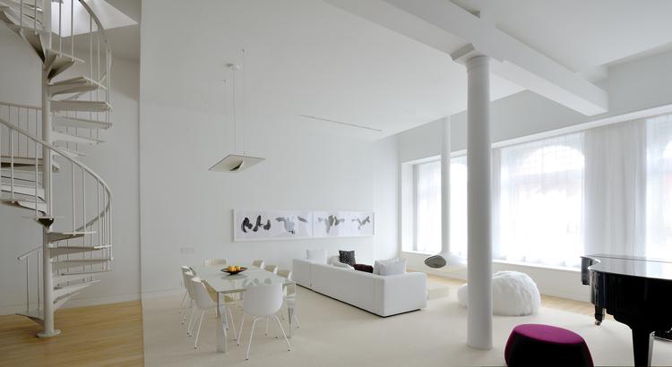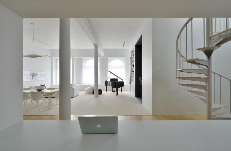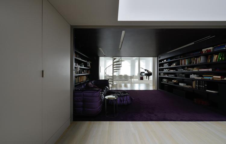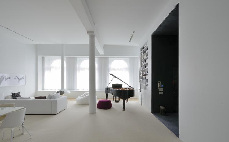 Resplendent in winter white this penthouse loft in Soho by New York-based David Hotson Architect almost qualifies as a winter wonderland to this Australian-based blogger. Christmas in summer here dear readers. And what exactly is hiding in its dark, dark heart? The perfect retreat from all that wonderful white.