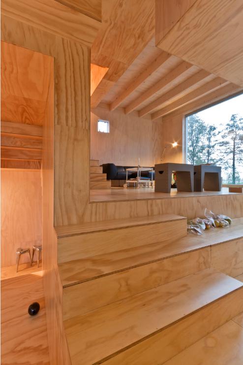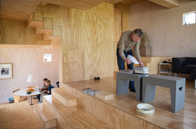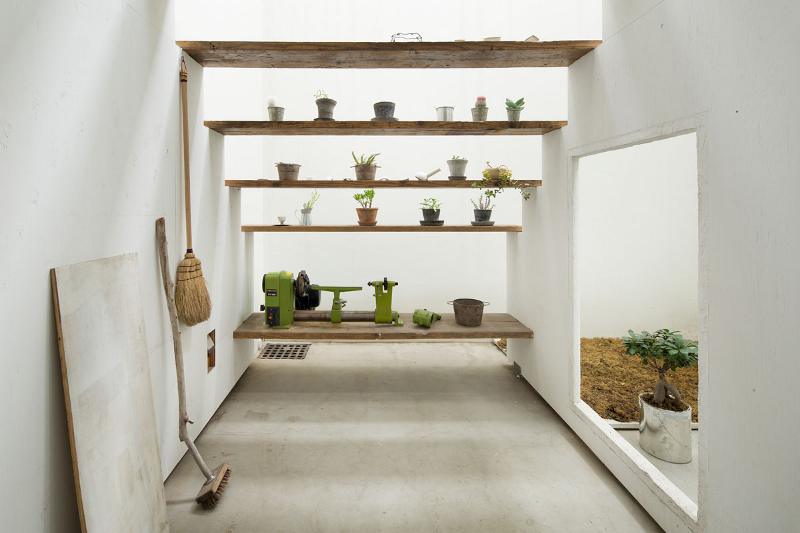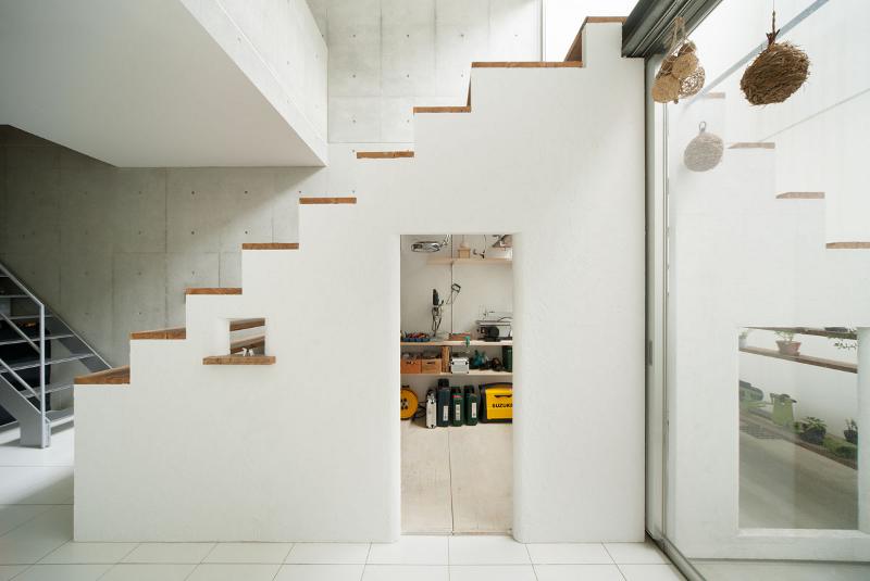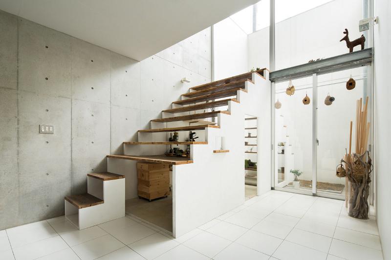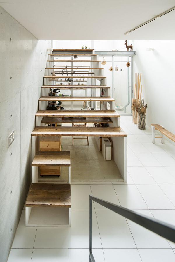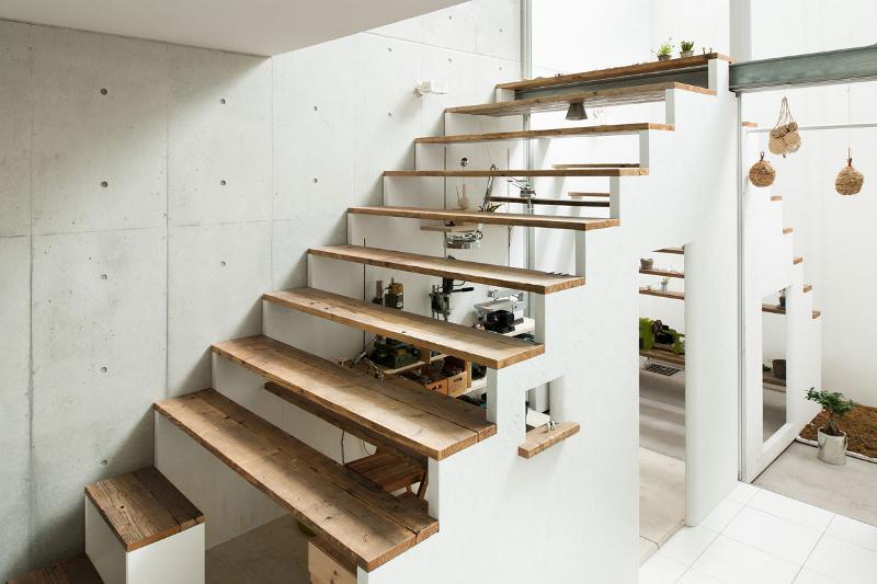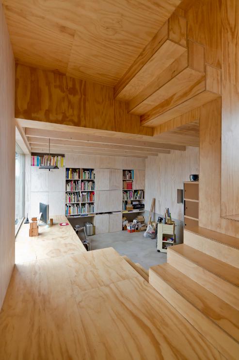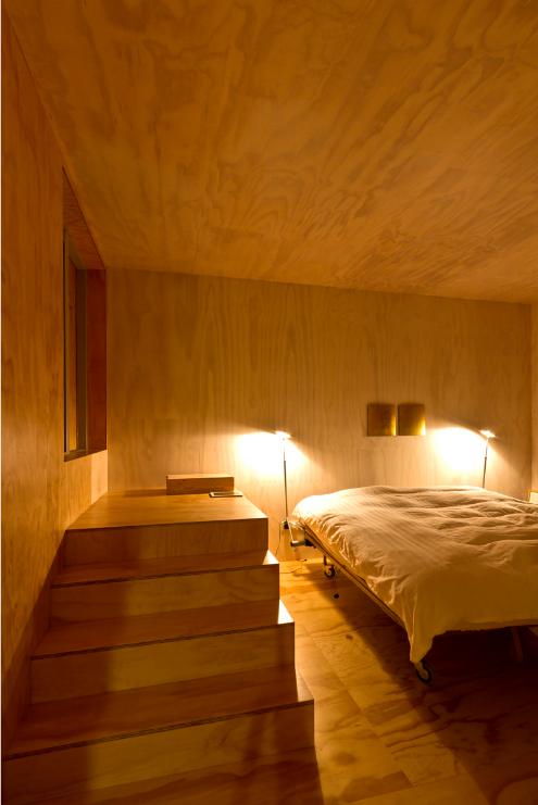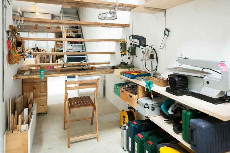 An artist’s workshop within a two storey home. A little house tucked within a void, opened and closed to the outside courtyard by the existing sliding window. Space for creating, for storing, for display, for chilling out, for sitting, for growing. By Japanese architects MAMM Design.