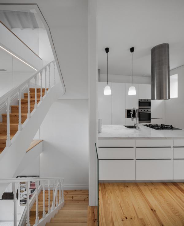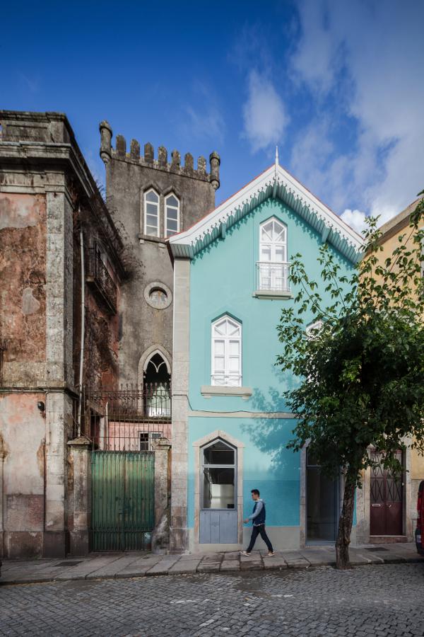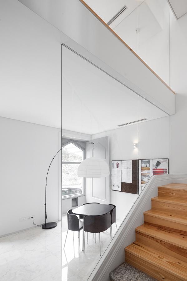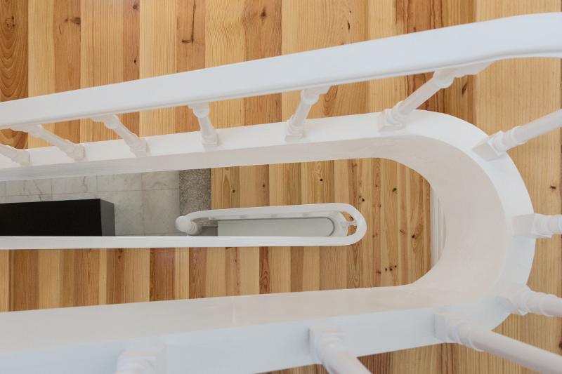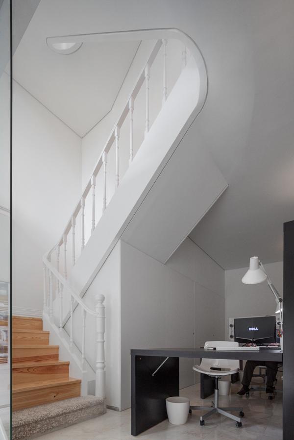 Returning from Brazil in the late 19th century Portuguese migrants brought not only new wealth but architectural influences from their adopted country. Who would have known that a chi chi alpine chalet design would have been popular in Brazil at the time? Fast forward to the 21st century and the”Chalé das Três Esquinas” (Three Cusps Chalet) in Braga, Portugal was in desperate need of repair. Tiago do Vale Arquitectos have breathed new life into the crumbling building with a lightness, a transparency that is defined by the sinuous original staircase that rises through the newly opened spaces. A modern work and live space in a reborn historic building.