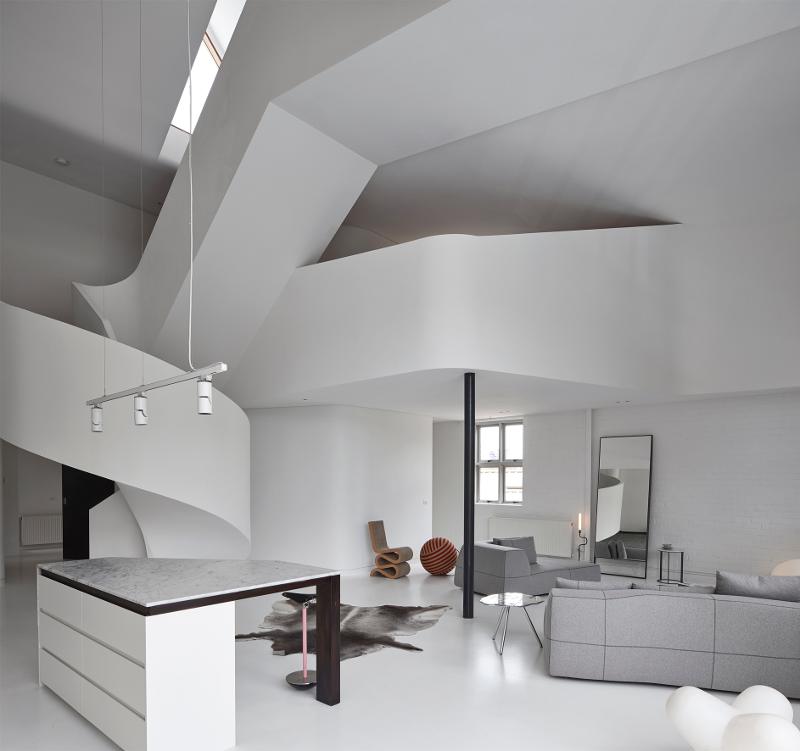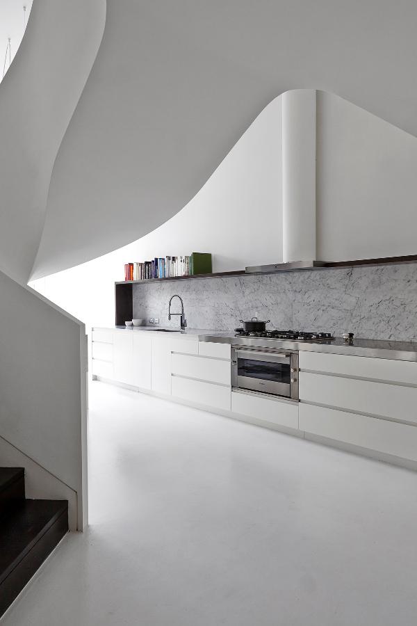 When is an apartment more than shelter, more than home? When it is art. The sculptural form of this loft apartment in West Melbourne by Adrian Amore Architects blurs the line between habitation and installation. Curvaceous and twisting, the staircase leads to first the sleeping level then rises to the rooftop terrace.
