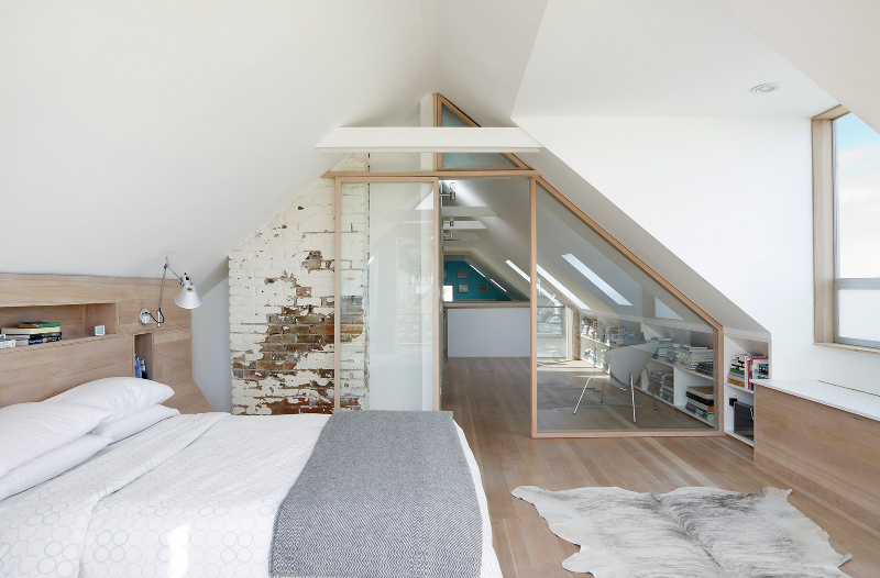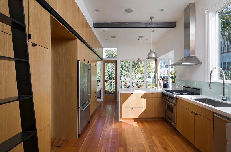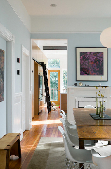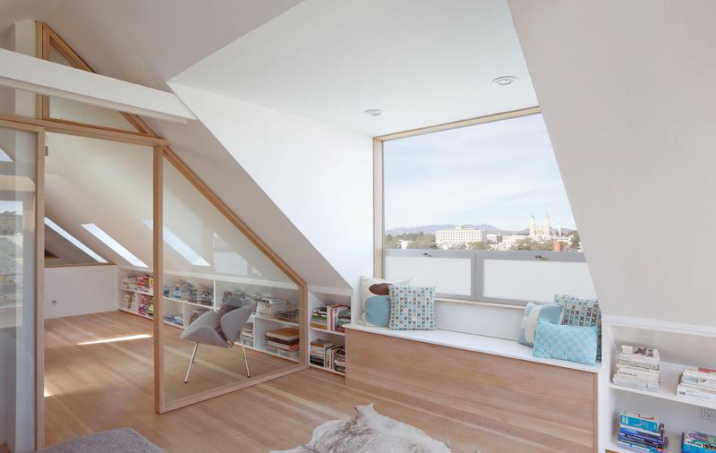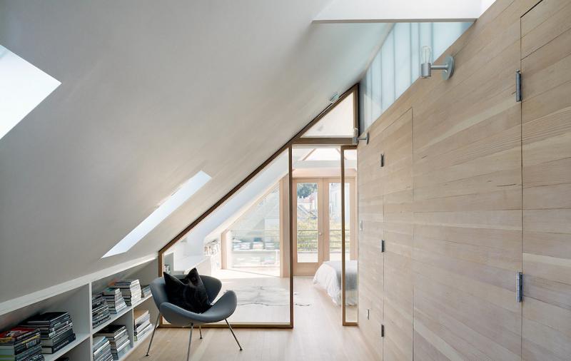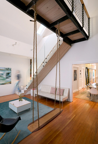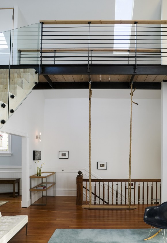 This 19th century Victorian style house San Francisco’s Haight Ashbury neighborhood was “remodelled” with the best of hippie intentions. Jump forward to the 21st century and architects Mork Ulnes have respected the building’s past and added their own slightly scandi touches to this renovation of the top 2 floors. Beautiful light floods into the attic bedroom while the butcher-block stairway and bridge provide drama and a sense of transition from public to private space.