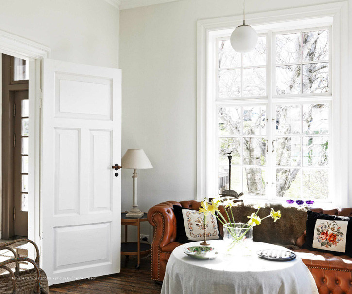 In the first issue they featured a wonderful conversion on an old hospital in Þingeri, that required alot of work – heating, electrical, windows, exterior doors. The homeowners did it right, and had the new windows and doors made to mimic the look of the old ones. Old floorboards were discovered beneath layers of flooring and were re-sanded. The result is a really beautiful, historical home that is simple decorated, but so effective as the decor does not distract from the beauty of the building. Serenity now.