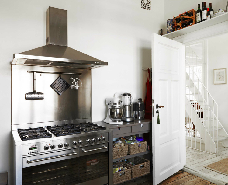 An eclectic mix of vintage, industrial and modern pieces defines the latest home by San Francisco interior designer Antonio Martins. Starting with an impressive concrete and steel base in a home designed by Zack de Vito Aarchitecture, Martins has layered not only furnishings and finishes but meaning into the modern decor. Favourites besides the Cassina Cab chairs in the dining room? The fab string of lights hanging through the stairwell and the personal touches like the b&w photos of family and friends casually propped on steel shelves. (More of Antonio Martins’ here and here.)