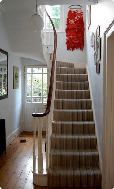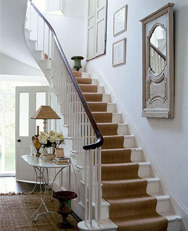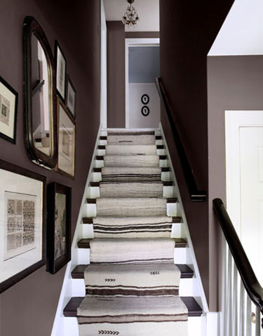 This reader request comes from Melinda: “My partner and I are renovating our 130 year old semi in Sydney, he wants carpet on the stairs (because apparently I ‘clunk’… which to be perfectly honest I do) and I want to stain the original timber. I’m thinking a stair runner may be the perfect compromise. I would be very much appreciative if you could dig into your amazing picture resources for stair runners.” Here are some photos of inspirational stair runners for you Melinda, the first being my absolute favourite EVAH.