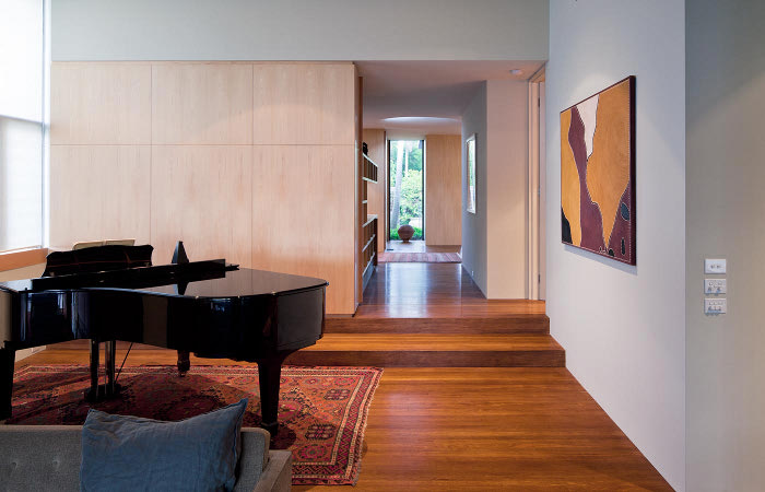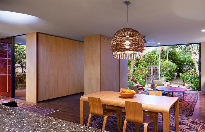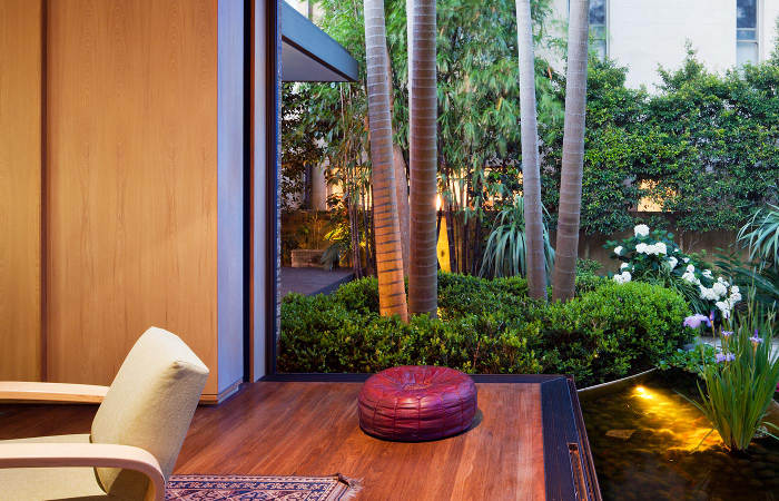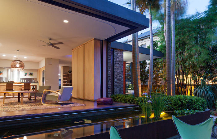Imagine living in the bustling, densely populated inner city suburbs of a cosmopolitan city. Imagine living in a home that sits on a very small piece of land. Overlooked by neighbours. Imagine living in a private oasis with walls that slide away and blur the boundaries between inside and out. Where you can literally reach out and touch the foliage, dip your toes in the pond. Imagine a secret garden in Birchgrove in Sydney. Love this home by Pearse. There is even more to love after the jump including a couple of sexy staircases and books, oh books!.