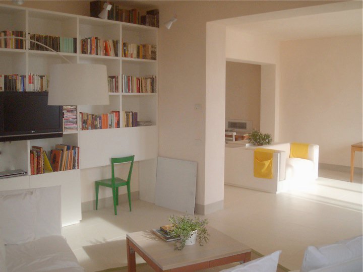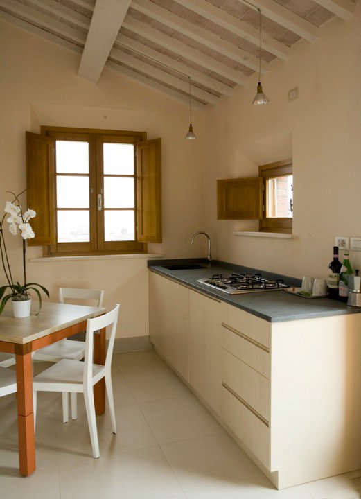 A huge thanks to Deb who sent us a link to an Italian magazine “Le case di Elixìr“. They feature gorgeous homes in several styles they call shabby chic, meltin’ pot, classic and contemporary. I am most definitively drawn to the rustic, “shabby chic” homes in Italy that speak of history. I found one that made my heart melt. This is how I always imagined living in Italy (it’s been a dream of mine forever, as my mom is Italian), in a rustic villa with stone/brick walls and floors and wooden beams, with bits of modern furnishings thrown in for shock factor. This villa is going to haunt me (delightfully) for a long time.