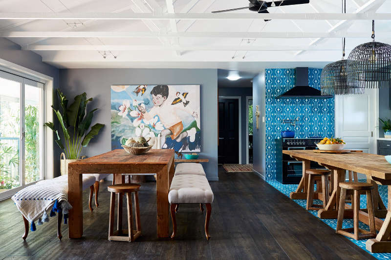 A joyous celebration of all things boho in the hills behind the beautiful blue beaches of northern New South Wales. In a part of the country known for its lush greenery and laid back alternative lifestyle, it’s not surprising to find such a colourful, individual home. Stylish, fun, liveable and lively… and it once was a boring 1980’s brick bungalow. A home about personality and passion by Byron Bay based Alida and Miller.